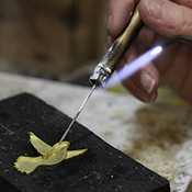 Amy Roper Lyons is a studio jeweler and enamelist. Her work is concerned with the marvelous variety of form and color found in the natural world. Inspired by her garden and long walks along the seashore near her home, she creates one-of-a-kind and limited edition pieces in high-karat gold, enamels, and gemstones. Pieces are hand fabricated out of gold and enamels, which are colored glass powders applied in thin layers and fired in a furnace.