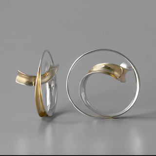To create her handmade designer jewelry, flat patterns are cut from sheets of gold and silver and hammered systematically over specialized tools. Once a piece has been hammered into its final form, it is filed and sanded, then buffed to a high polish. This fine finish accentuates the simple sculptural lines of her contemporary jewelry.