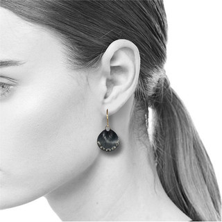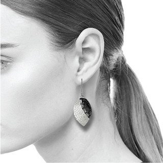 These statement earrings are in the signature black, white and gold finish. Hand textured and fabric…