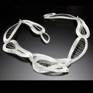 Suzanne stitches with gold or silver wire on metal shapes, giving her work three dimensions while honoring the basic design of each piece. Stitching is a way for her to create texture in her jewelry. She loves using the texture of the line and playing with different shapes. But what she loves most is seeing her finished work on other people where it absorbs the personality of the wearer and takes on a life of its own.